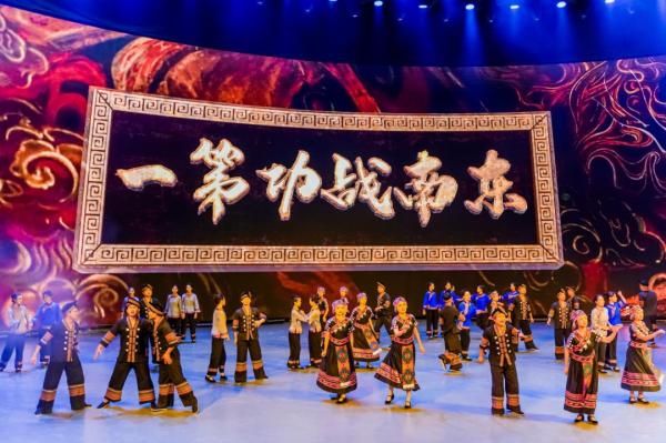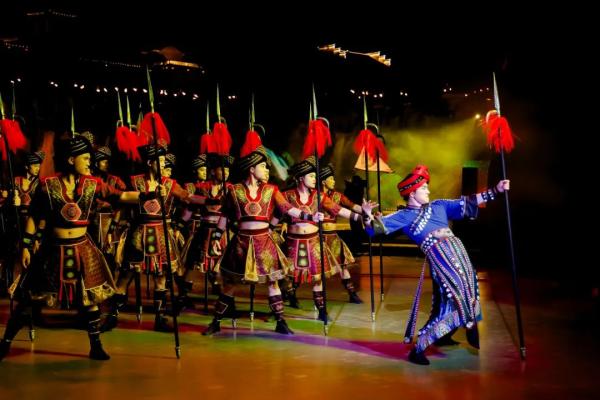 活动现场,一场融合湘西元素、永顺符号的文化大餐精彩上演,《遇见·风情》《遇见·风骨》《遇见·风采》三个篇章次第展演。《遇见·风情》篇章里,铜铃舞、土家风情组舞、薪火舞演绎着土家民族生生不息的历史文脉。《遇见·风骨》篇章讲述了土家族士兵年关临危受命,在土司王彭翼南保家卫国,立下“东南战功第一”的历史故事;随着舞台大幕缓缓拉开,土司王彭翼南抗击倭寇的场景完全融入到芙蓉镇花月湾的山水里,犹为震撼。《遇见·风采》篇章里,歌伴舞《湘西美》用优美的旋律把湘西的自然风光和独特的湘西民族文化元素呈现在观众面前,舞蹈《喜乐·丰收》则述说着新时代下湘西大地的发展盛况,处处洋溢着丰收的喜悦。