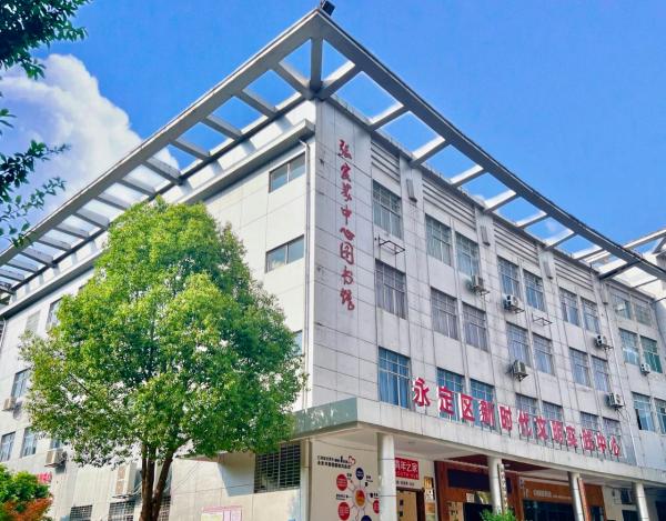 永定区图书馆创建于1976年,是永定区人民政府举办的公益性图书馆。该馆位于永定区治大院内,现有藏书18万余册,全馆设有综合阅览室、少儿阅览室、少儿绘本室、少儿数字资源体验区、少儿活动区、地方文献室、无障碍阅览室、多功能视听会议室、多功能展厅等多个对外服务窗口,开展书刊外借流通、馆内阅览、电子阅览、参考咨询、基层辅导、声像视听、文献复制、读者自修和文化志愿者培训等服务。